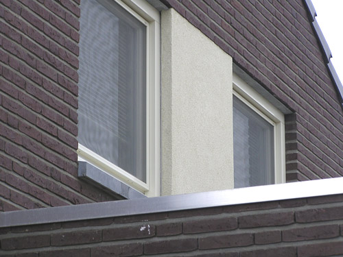 gipslijsten voor binnen en cementlijsten voor buiten.