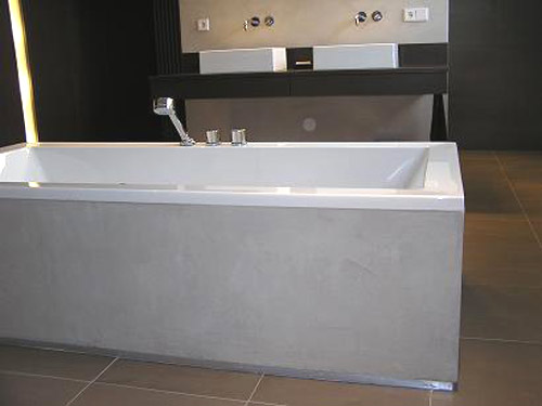 Het betonlook effect kan met diverse bovengenoemde materialen tot uiting worden gebracht.
